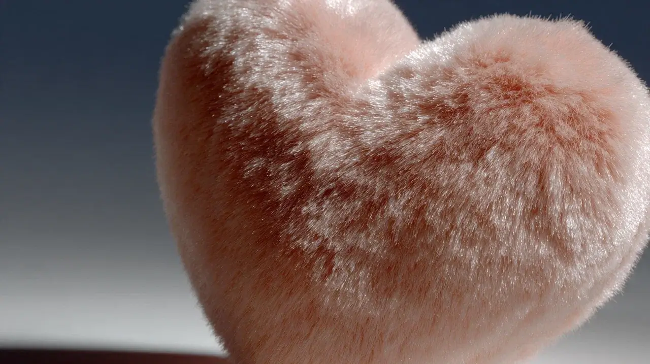 a floating plush-style heart-shaped. from the front viwe, 3D, tiny, soft lighting, gradient pink, no projection, white background