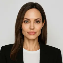Create a photorealistic, high-resolution professional corporate headshot. Square format (1:1), head and shoulders crop. The subject is wearing a dark charcoal business suit and a white shirt. The background is a solid, neutral light-gray studio backdrop. Use soft, even studio lighting to eliminate all harsh shadows from the face. Perform subtle skin retouching: remove minor blemishes and oily shine, but preserve natural skin texture, skin tone, and all defining facial features. The final image must look like a crisp, professional photograph.