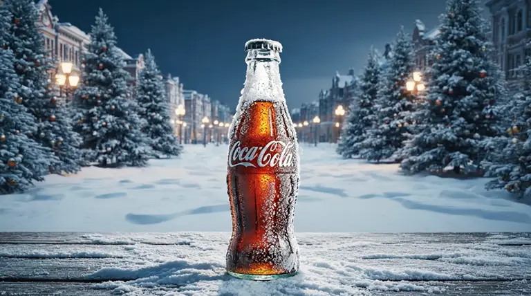 ""keywords"": [""Coca-Cola"", ""winter holiday"", ""bottle transforms"", ""festive build"", ""dusk to lights"", ""cinematic"", ""no text""]